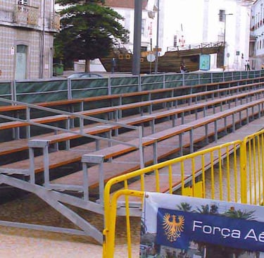 Damos orçamentos gratuitos para alugueres de bancadas em todo o território de Portugal Continental. Indique-nos as datas, local exato, lotação, tipo de bancada e características do piso através do email: